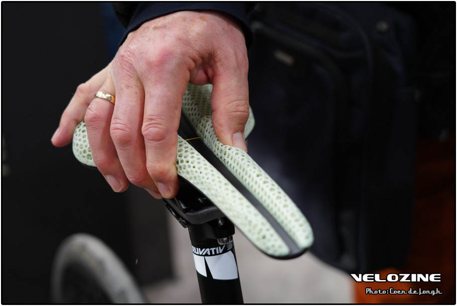 We zijn zo gewend aan de gebruikelijke vorm van zadels, dat dit 3D geprint exemplaar van Fizik tenminste een zeer opvallende is. In de minuut dat ik hier stond, hadden minstens 5 duimen erin gedrukt!