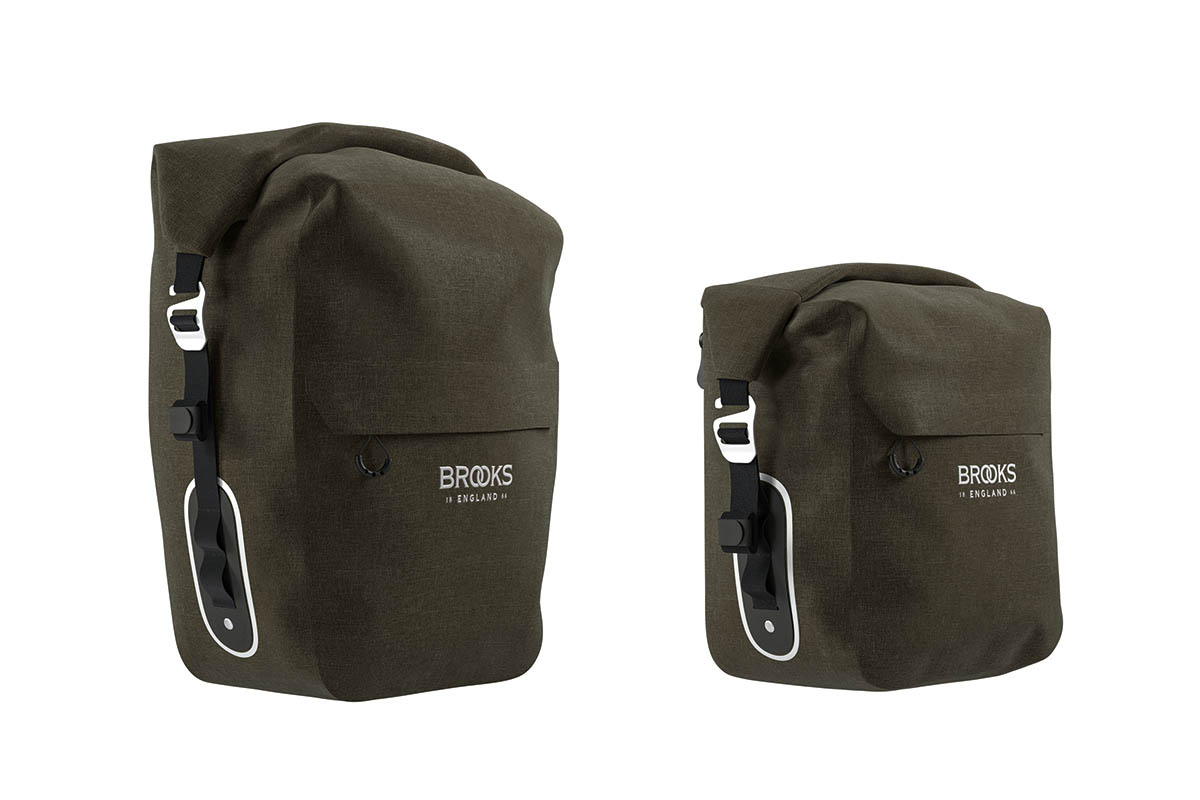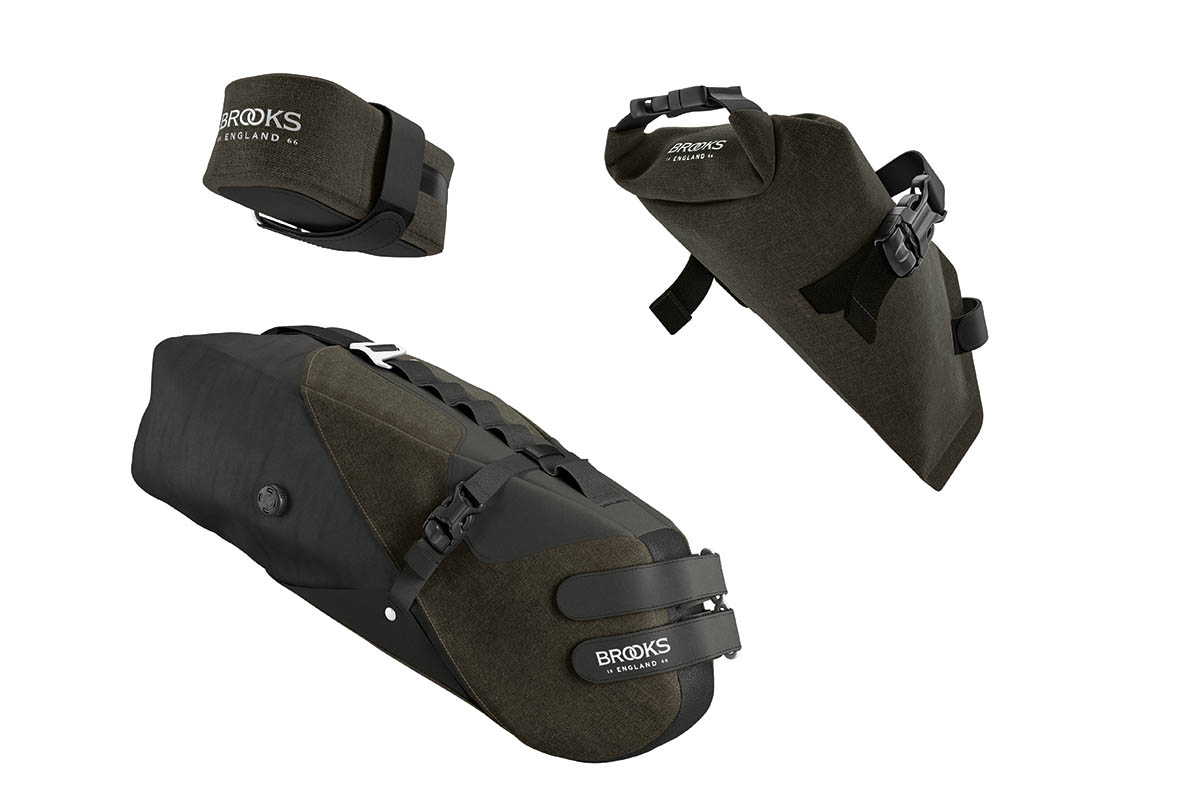 Brook’s nieuwe Scape Collection bestaat uit 10 tassen. Van een compacte stuurtas tot een grote tas voor op een drager, maar ook alles daar — letterlijk — tussenin. Ze zijn gemaakt van slijtvast en dus duurzaam 660D polyester en PFC- en PVC-vrij nylon, waarbij het materiaal waterdicht is tot minimaal 50.000 waterkolom. Alle naden zijn lasergelast, waarmee ze niet alleen sterk maar óók waterdicht zijn. Ritsen zijn eveneens extra afgedicht en openingsflappen zijn zo vormgegeven en te sluiten dat de tassen gedurende lange tijd spatwaterdicht blijven. Alle tassen zijn voorzien van nylon verstevigingen, Hypalon klittenband, aluminium ‘hang- en sluitwerk’ en Klick Fix hardware voor diverse configuraties op/aan je bike alsook accessoires voor het koppelen van de tassen onderling.