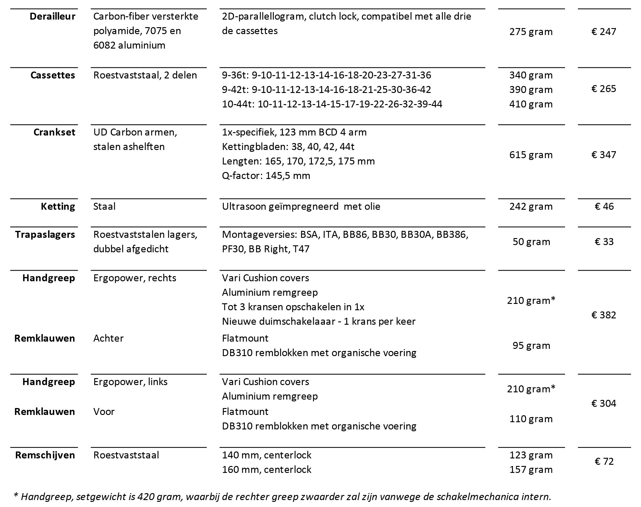 Campagnolo Ekar gravel groep: gewichten en prijzen