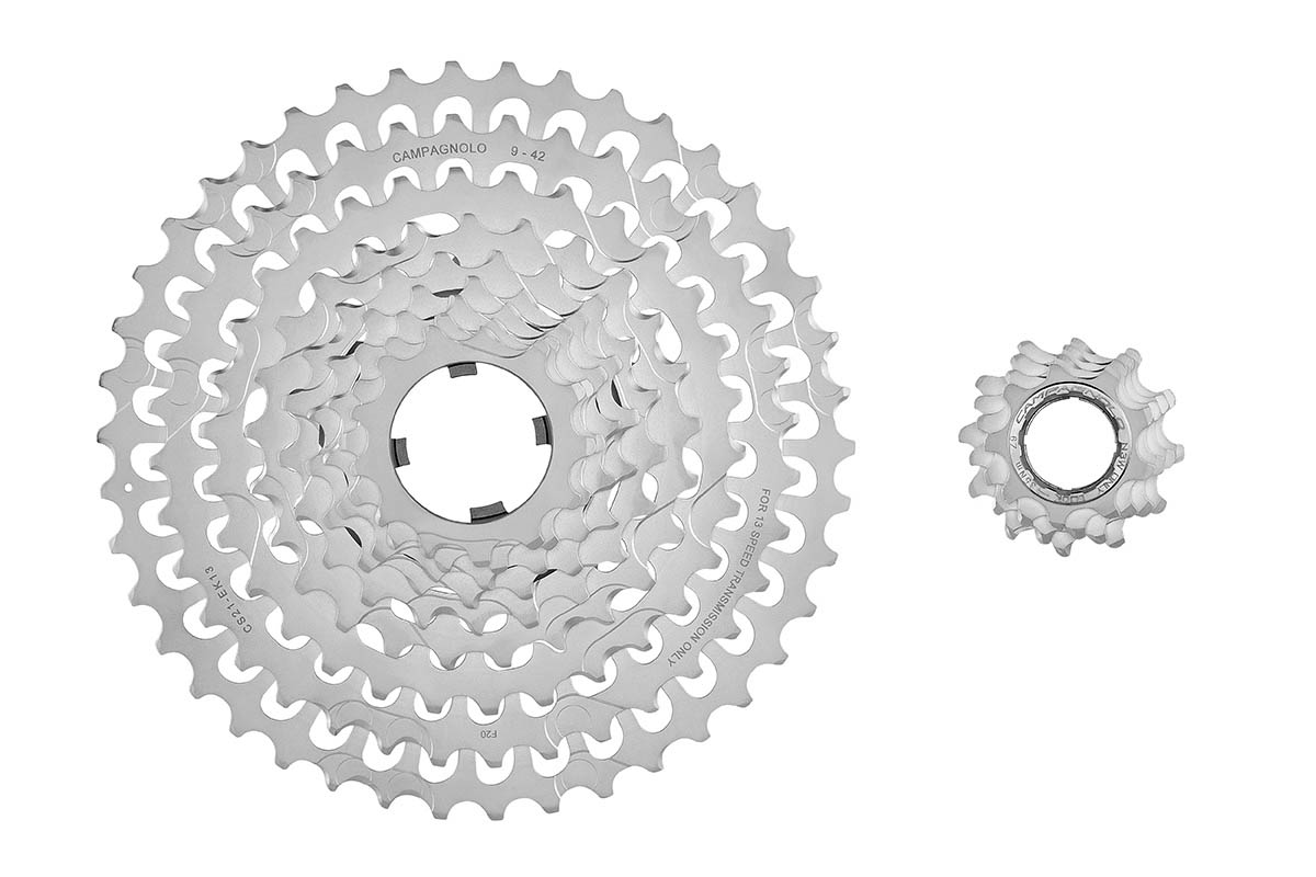 9t als kleinste krans is overigens ook niet uniek. Onder meer E-Thirteen past ze ook toe op hun cassettes. Maar Campagnolo is wél de eerste groepenfabrikant die ze opneemt in een complete high-end groepset.