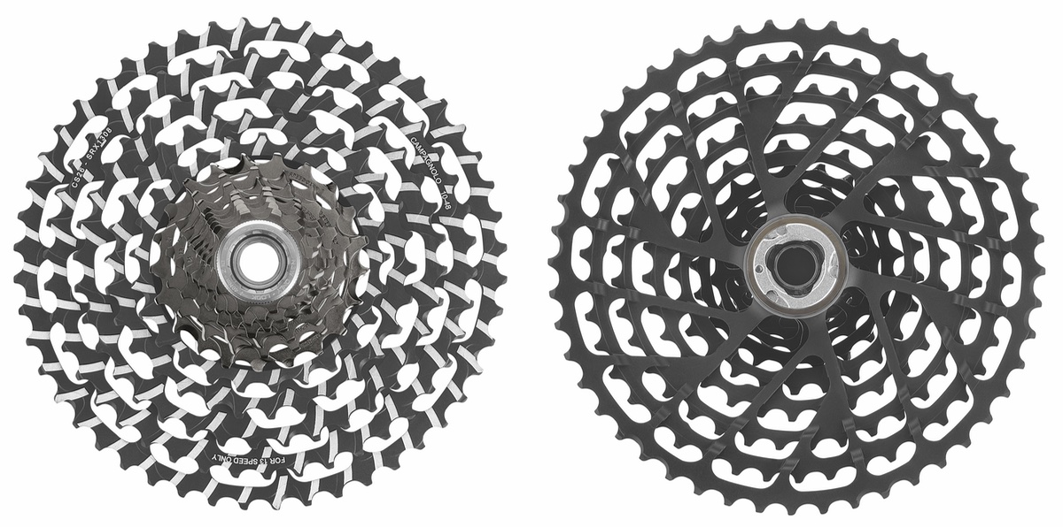 - Cassette: beperkter aanbod (10/33t en 11/36t voor weg, 10/48t voor gravel) en minder bewerkt. Andere afwerking: black chrome en satin black met lasergeëtste textuur.