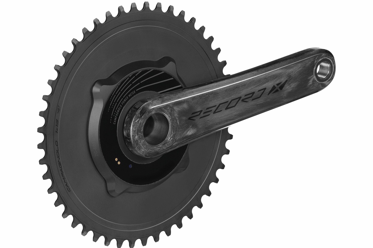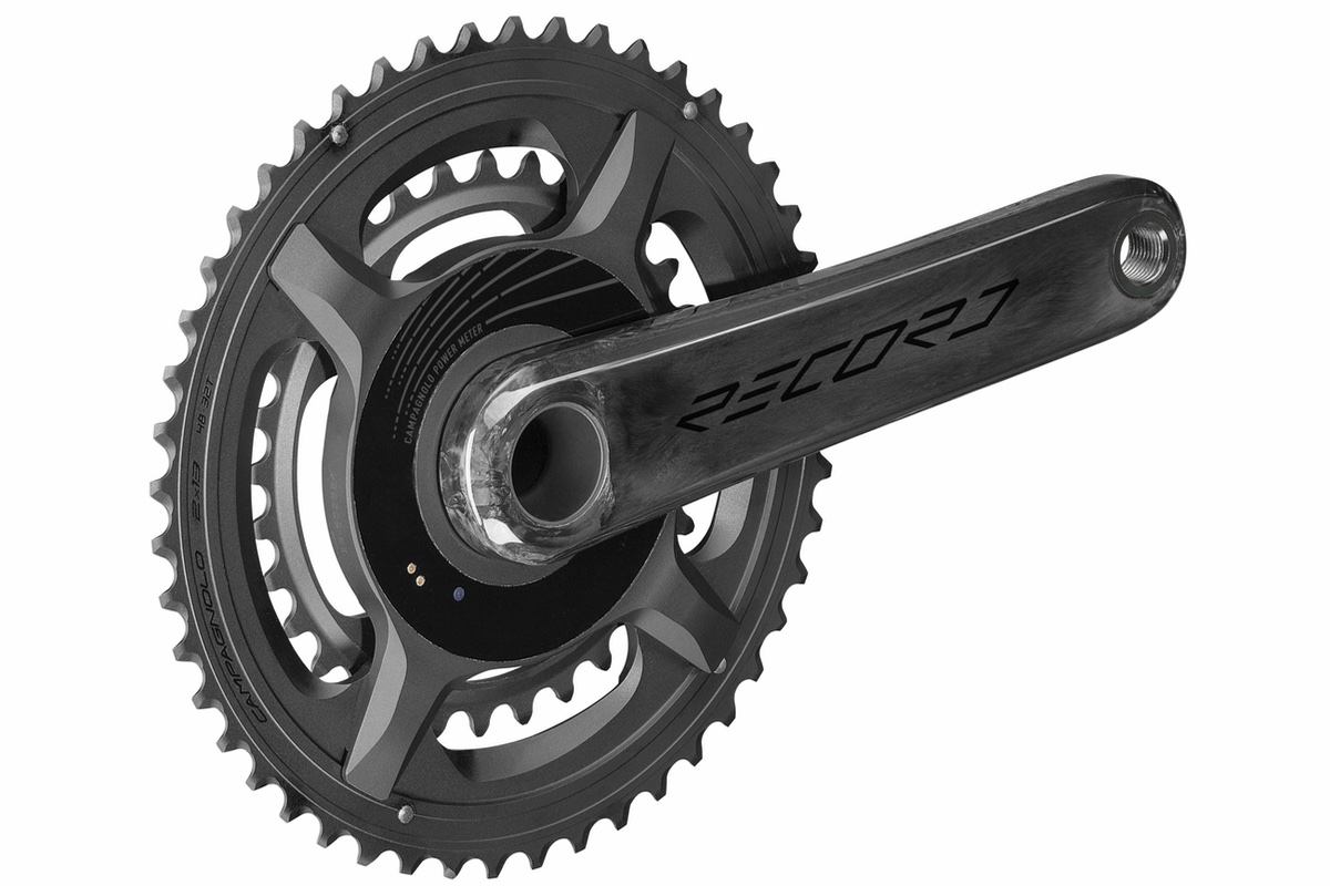 Naast de standaard cranksets is er een geïntegreerde vermogensmeter beschikbaar: de Record PWM. Deze is afgeleid van de Super Record HPPM, maar met iets vereenvoudigde elektronica. Niettemin claimt Campa een nauwkeurigheid van ±2 procent. De meerprijs is 600 euro per crankset. Dat is bijna de helft van de 1.167 euro die de Super Record HPPM kost. Opladen doe je via dezelfde magnetische laadpoort als die op de derailleur-batterijen.