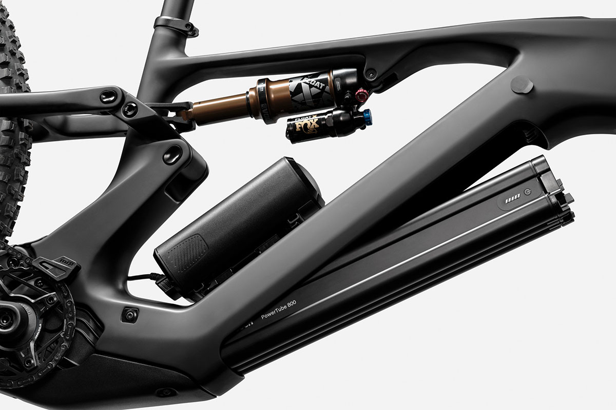 Cannondale plaatst die 800-wattuur-accu zoals gezegd in de met een klep toegankelijke onderbuis. Een frame met zo’n constructie is over het algemeen wat zwaarder dan frames met volledig geïntegreerde, niet of slechts moeilijk uitneembare accu’s. Maar gebruiksgemak is ook wat waard. In de voordriehoek past Bosch’ Power More range-extender met 250 wattuur extra sap. Of de onderbuis ook de kleinere en lichtere 600-wattuur-accu accepteert, om daarmee een lichtere bike te realiseren, is nog niet bekend.