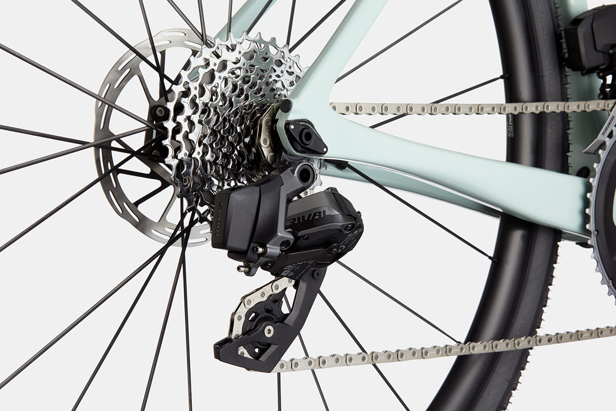 De SuperSix Evo CX en SE zijn onmiskenbaar Cannondales. Dus ook bij deze bikes vind je de Ai-achterkant. Oftewel, ‘Asymmetric Integration’, waarbij de achternaaf 6 mm uit het midden (naar rechts) is gezet. Dit geeft een meer gelijke spaakhoek en dus -spanning links en rechts in het achterwiel. Bovendien kan Cannondale zodoende een relatief korte achtervork combineren met brede banden. En om bij de achterkant te blijven: de SuperSix Evo CX en SE frames hebben SpeedRelease dropouts. Dat concept slaat het midden tussen een reguliere steekas en een authentieke quick release, om daarmee dus – zoals de naam impliceert – het snel uitnemen van het achterwiel te faciliteren.