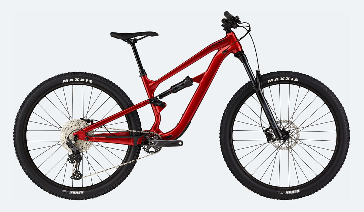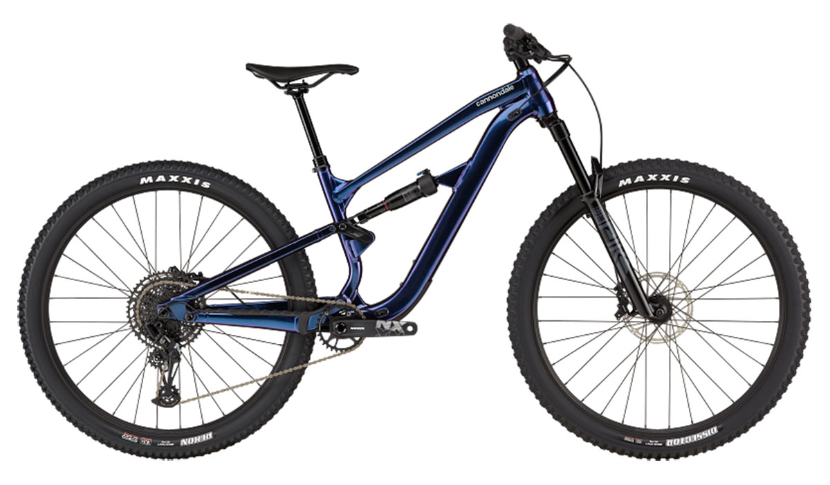 Het (voorlopige?) topmodel voor 2023 met het nieuwe aluminium frame is de Habit 3. Deze bike is voorzien van een RockShox Pike Select voorvork met 140 mm veerweg. De 130 mm veerweg achteraan wordt in bedwang gehouden door een RockShox Deluxe Select+ DebonAir-achterdemper. De shifter, derailleur, cassette, crank én ketting zijn Sram NX Eagle. Remmen doe je Sram G2-schijfremmen. Rond Shimano MT400-naven spaakt Cannondale een setje Stan’s NoTubes Arch D aluminium velgen met daarop Maxxis Dissector (voor) en Rekon-banden (achter). Zoals het een trailbike betaamt komt de Habit 3 standaard met een dropper-zadelpen; in dit geval een TranzX.