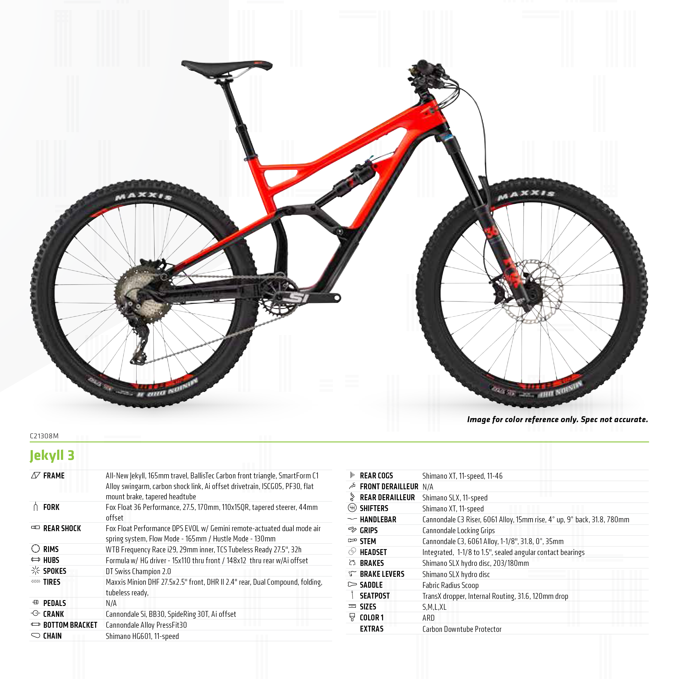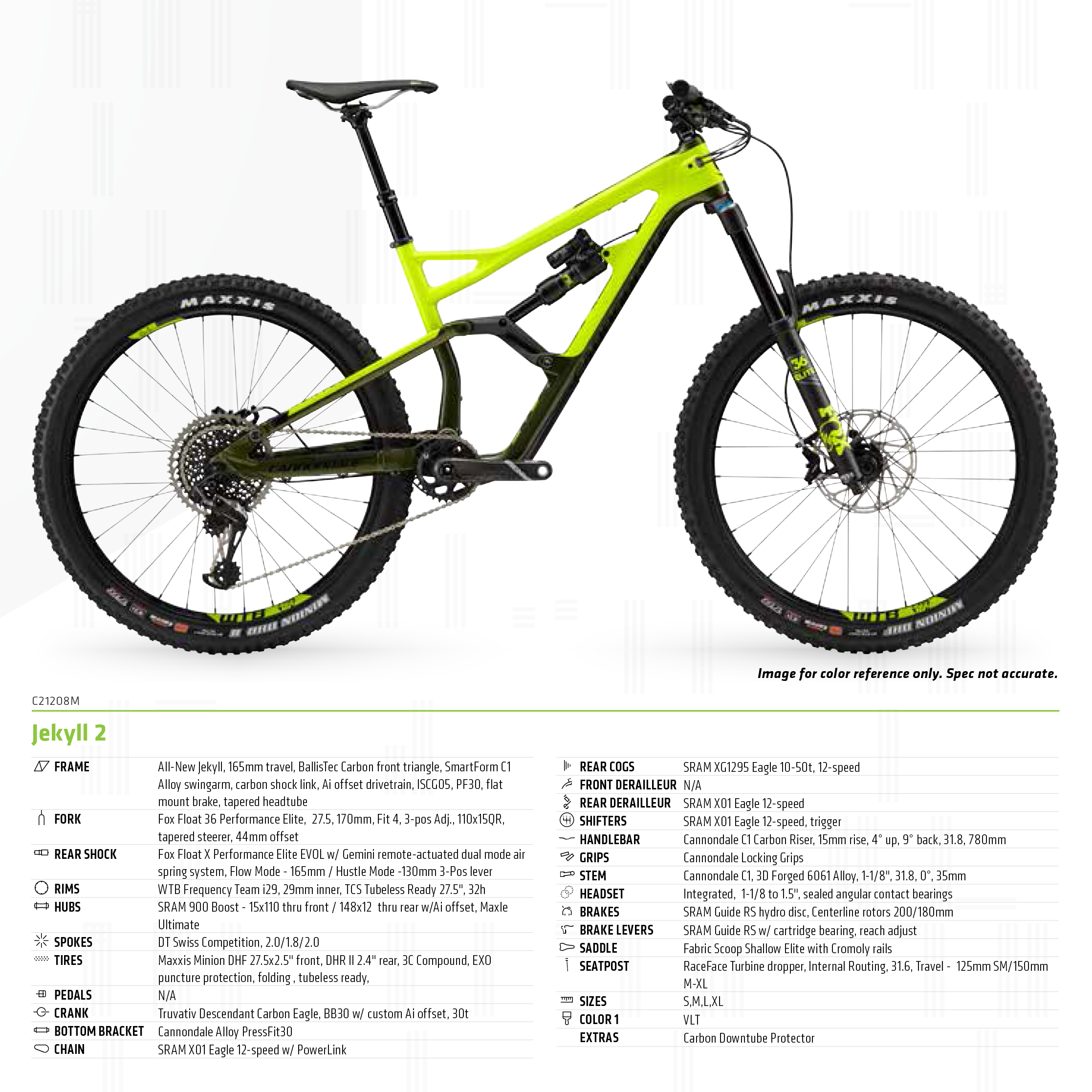 De Jekyll range bestaat uit 4 modellen. De Jekyll 1 heeft een carbon voor- én achterframe. De 2 en 3 hebben een carbon voorframe en een aluminium achterframe. De hekkensluiter 4, is volledig van aluminium. In alle gevallen is de hevel tussen achtervork en demper van carbon.