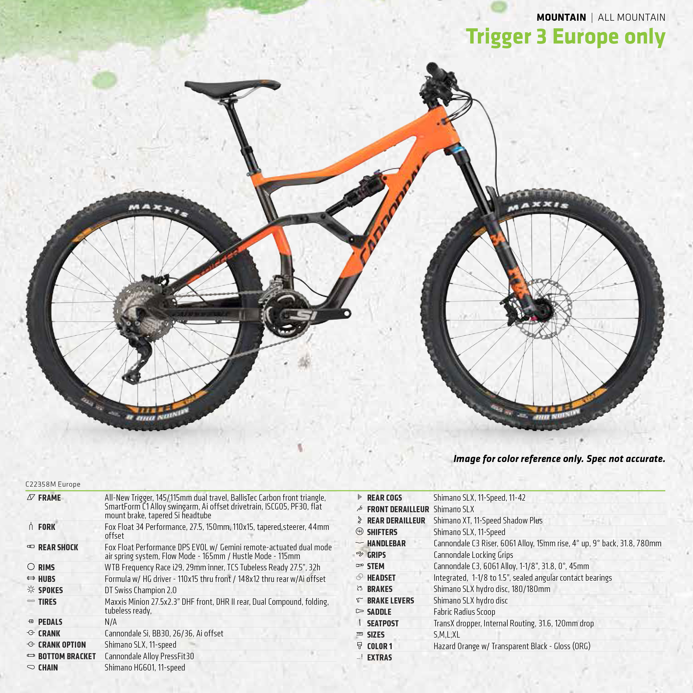 De Trigger komt in 3 uitvoeringen, waarbij alleen de Trigger 1 een carbon voor- én achterframe heeft. Bij de 2 en 3 is de achtervork uit aluminium. De Trigger 1 in dames-uitvoering die in het persbericht getoond wordt, komt helaas niet naar Europa.