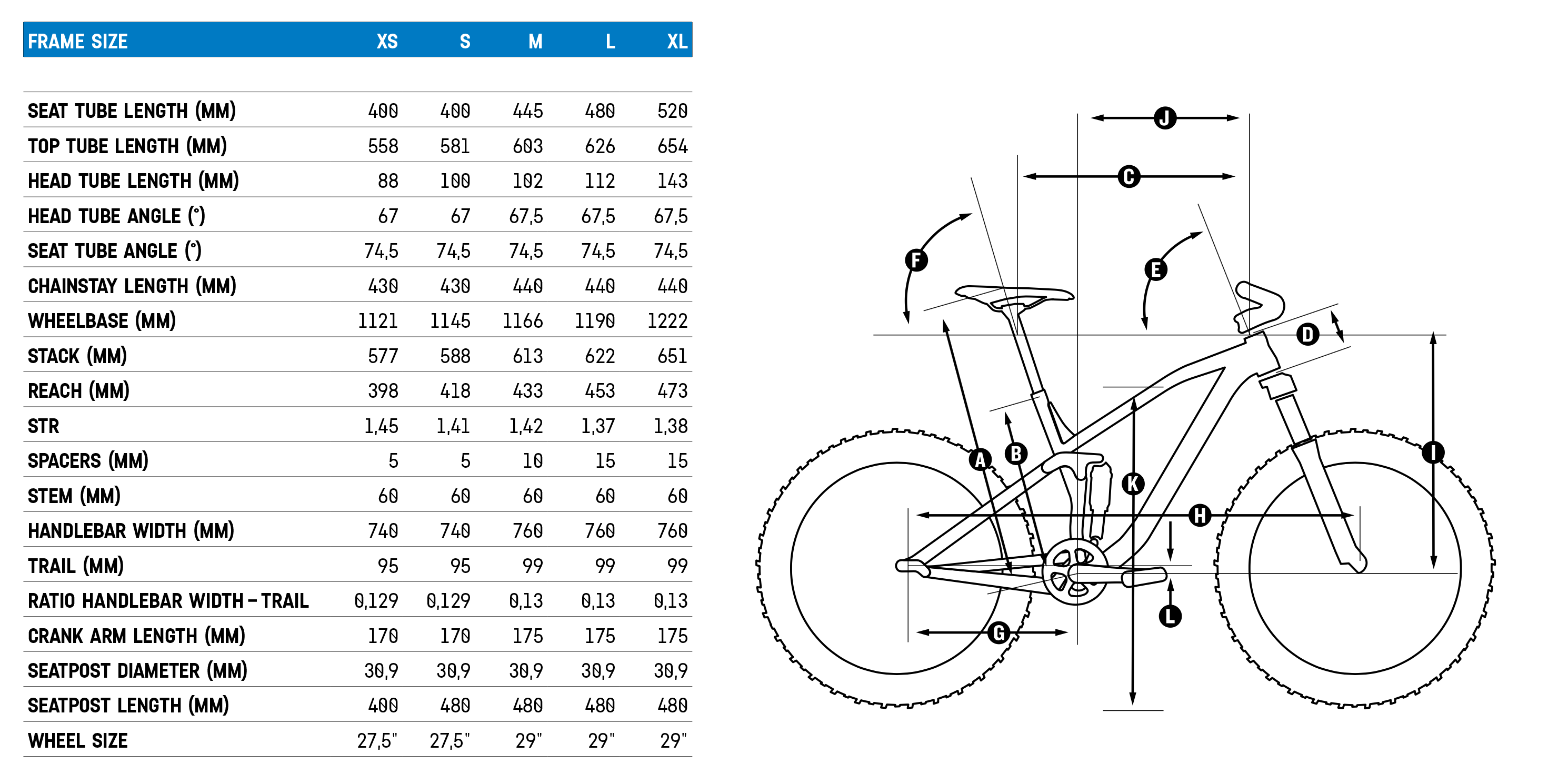 This allowed us to avoid having big differences in handling behaviour across different sizes, which can be caused by varying frame heights and different wheel sizes.