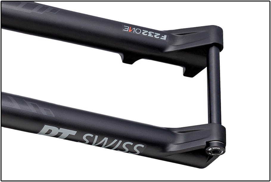 Eén van de eisen was om een hoge torsiestijfheid te creëren. Dat was ook een uitgangspunt bij de vorige generatie voorvorken: de OPM, met hun kenmerkende verbindingsbrug aan de áchterzijde van de onderpoten. Bij de nieuwe F 232 One zit ‘ie weer aan de voorzijde. De binnenpoten hebben een diameter van 32 mm binnenpoten en wijken daarin dus niet af van wat de concurrentie doet. Dat, terwijl DT Swiss nu dus claimt dat de torsiestijfheid die van een Fox 34 evenaard, terwijl het gewicht varieert tussen de 1480 gram en 1510 gram, afhankelijk van de veerweg.