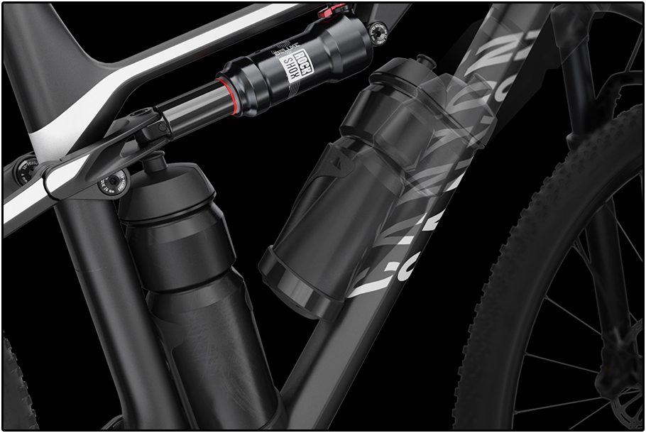 Canyon ontwierp een volledig nieuw frame waarbij het doel was om onder de 2.000 gram te blijven voor frame én demper. Daarnaast móest er ruimte zijn voor niet één, maar twee 800 ml bidons. Missie geslaagd? Ja.