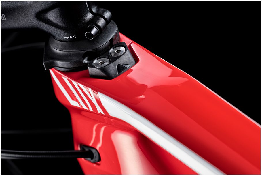 Naast het lichtste SLX frame dat voor de twee topmodellen uit het programma gebruikt wordt, is er een ook een SL versie. Iets meer carbon tegen een scherpe prijs. Dit frame weegt 2.170 gram in de maat M. De SLX modellen komen met 100 mm veerweg voor- én achteraan. De SL heeft eveneens 100 mm veerweg achteraan, maar de voorvork heeft 10 mm méér bewegingsruimte.