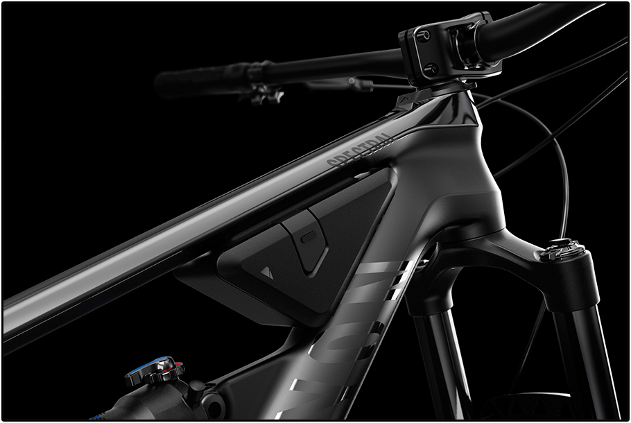 Daarnaast is er een een eigen opbergdoos voor de rugzak-haters voorzien. Deze past voor in de framedriehoek en biedt ruimte voor CO2 patronen, een binnenband of je boterham. De nieuwe plaatsing van de demper maakte het ook mogelijk de bovenbuis bij alle maten lager te positioneren voor meer vrijheid. Details die we al eerder zagen bij Canyon komen ook hier terug; de draaihoek van de voorvork wordt beperkt door een aanslag op de bovenbuis. Mocht je Spectralculair op je gezicht gaan, dan zullen remgrepen en shifters je bovenbuis niet beschadigen!