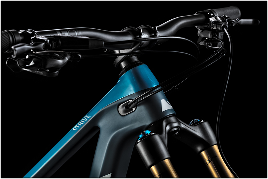 In tegenstelling tot het vorige model, wordt de Strive alleen met carbon frames geleverd. De Strive 5.0 tot en met de 8.0 maken gebruik van het ‘CF’ frame dat in maat M 2.700 gram (zonder demper) weegt. De 9.0 Team en 9.0 LTD topmodellen krijgen een ‘CFR’ frame. Dat oogt identiek, maar door een andere carbon-layup weegt dit frame in maat M met 2.400 gram dus 300 gram minder. Naast de looks zijn ook de overige framedetails van beide versies identiek en hebben ze eenzelfde design-taal als de onlangs geïntroduceerde Neuron en Spectral.