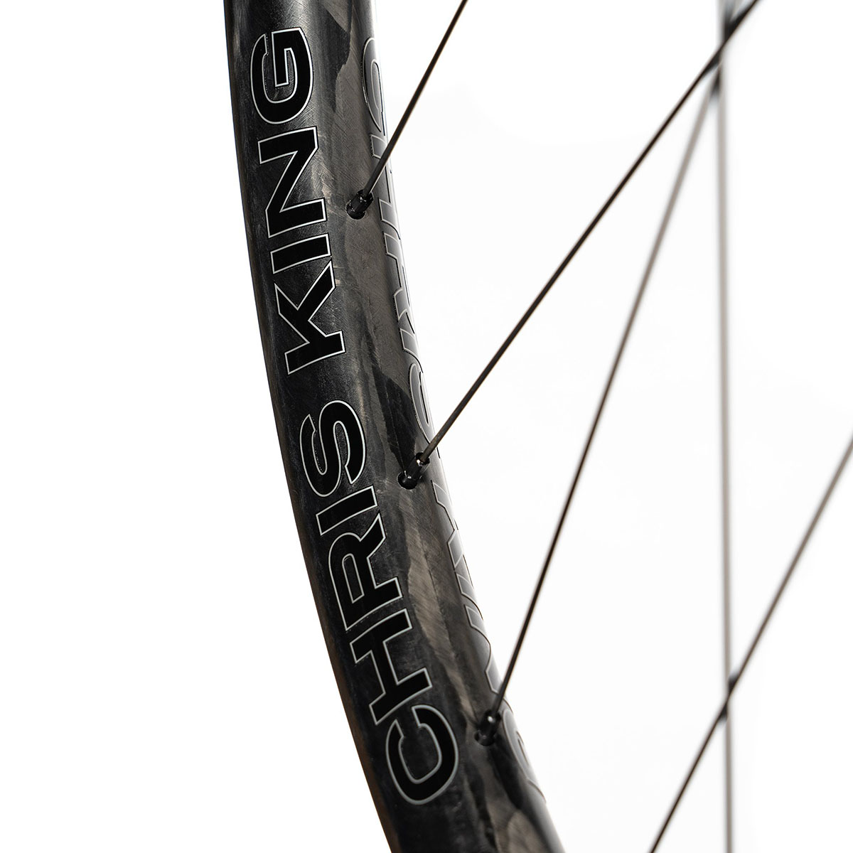 Voor de GRD23 gravelwielen past Chris King een hookless FusionFiber velg toe met een binnenbreedte van 23 mm. Naar hedendaagse gravelmaatstaven is dat bijna conservatief te noemen. De 404 gram wegende velgen zijn met 24 mm ook redelijk laag, wat natuurlijk bij moet dragen aan het comfort van de wielen. Via 24 Sapim CX Ray spaken worden die velgen verbonden met Chris King R45 Centerlock naven. Het voorwiel weegt 664 gram, het achterwiel 804 gram. Het setgewicht is dus 1.468 gram.