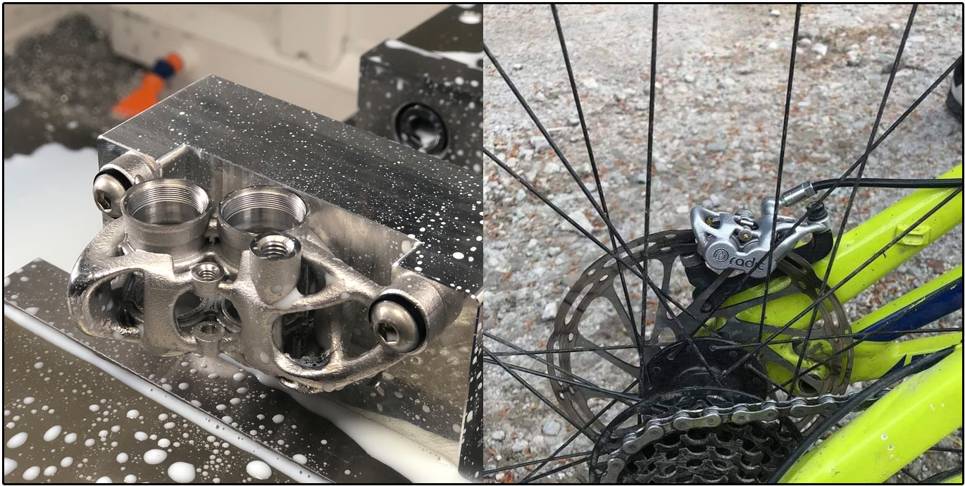 Een goed voorbeeld hiervan is een remklauw met al zijn kanalen en boringen voor remzuigers. Tot dusver bestonden remklauwen altijd uit twee helften, of uit één smeedstuk dat volledig doorboord en deels afgedopt wordt. In de regel zijn remklauwen uit één stuk stijver. Smeedbewerkingen maken een onderdeel weliswaar sterker, maar beperken óók de vormvrijheid en dus lijkt 3d printen een interessante optie voor dit onderdeel.