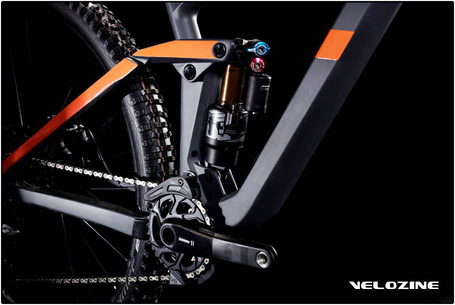 De vraag mag duidelijk zijn: ook zij wilden mee in het bekende verhaal: grotere wielen, langere reach en vlakkere stuurhoek. Ergo: een Stereo One50 met 29 inch wielen. Naast deze voor zichzelf sprekende features, is de fiets voorzien van een ISCG05 mount, heeft het frame een kortere achterbrug voor een levendiger gedrag en een steilere zithoek om wat makkelijker te kunnen klimmen (en het gewicht in het midden van de fiets te houden). Dat de kabels binnendoor lopen, is weinig opvallend tegenwoordig. Wat wél opvallend is, is dat er óók ene kabel voor een voorderailleur voor een 2×11 setup toegepast kan worden. Cube volgt hierin duidelijk de strategie van Shimano om naast 1×12 / 1×11 ook gewoon fietsen aan te blijven bieden mét een voorderailleur. Het topmodel is overigens wel afgemonteerd met SRAM Eagle componenten.