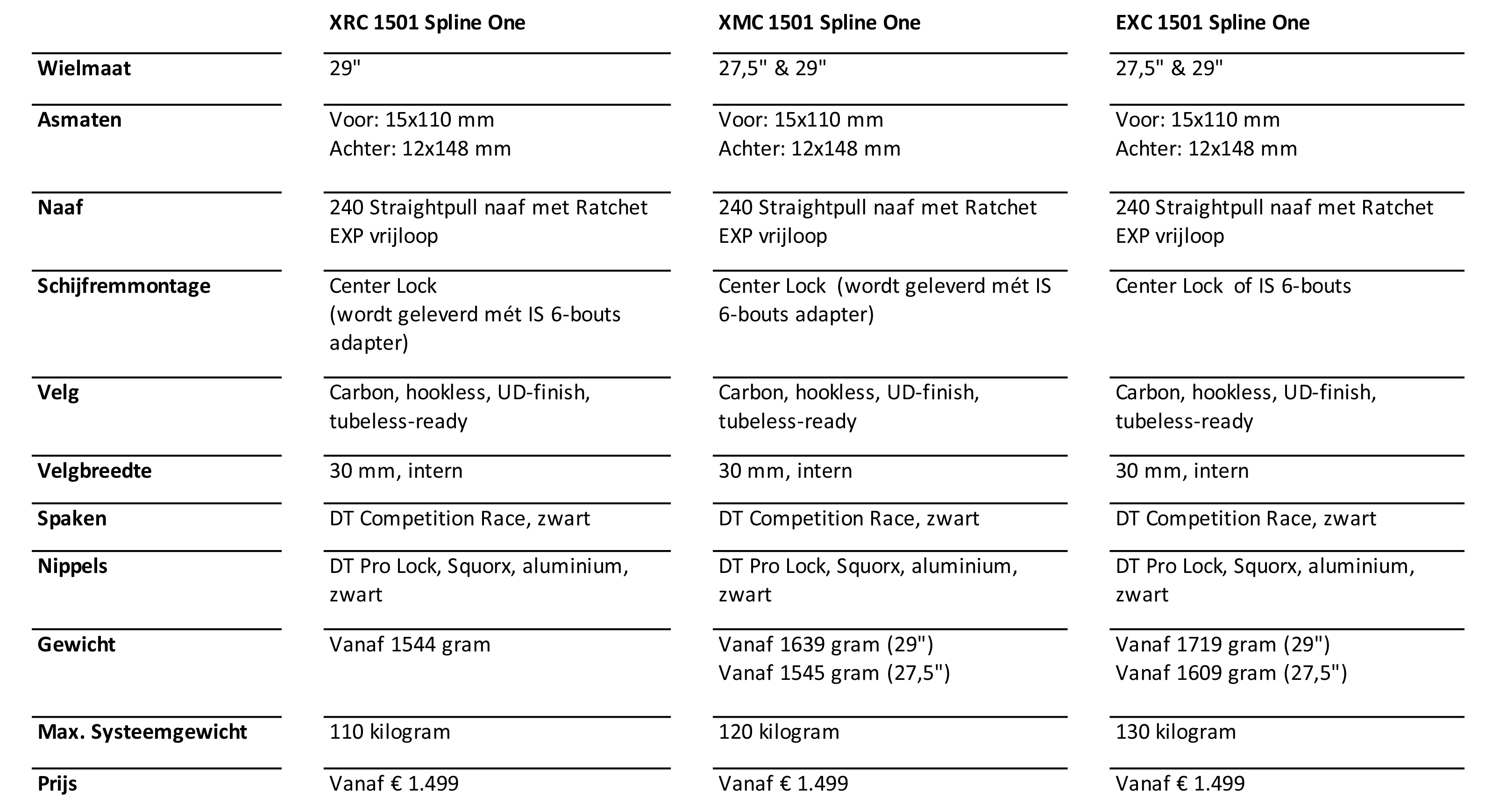 Zoals bij de vorige 1501-serie omvat de nieuwe ‘Carbonized’-generatie wielsets voor cross country tot en met enduro en over de gehele breedte van het programma zijn de velgen… breder. Daarmee hebben banden nóg meer support, terwijl de druk lager kan zijn voor een vergroting van het contactoppervlak tussen band en ondergrond. Hoewel de velgen dus identiek zijn in breedte, zijn ze wel afgestemd op het beoogde gebruik. De XRC1501 heeft de lichtste velg. Terwijl er bij de velgen voor de XMC1501 en EXC1501 wielsets meer focus is gelegd op de impactsterkte. Bij de XMC-velg zijn alle wanden iets dikker. Bij de EXC-velg is ook het spaakbed verdikt.