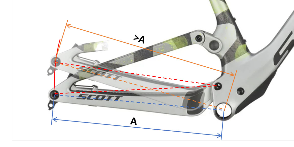 Wanneer je achtervering inveert, beweegt de achteras weg van de trapas. De mate waarin is afhankelijk van de exacte constructie van de achtervering. Maar nagenoeg elke fullsuspension heeft hiermee te maken, omdat de achtervork niet roteert rond de trapas, maar een lagerpunt ergens daar boven. En in de regel geldt: hoe meer veerweg, hoe meer dit effect optreedt.