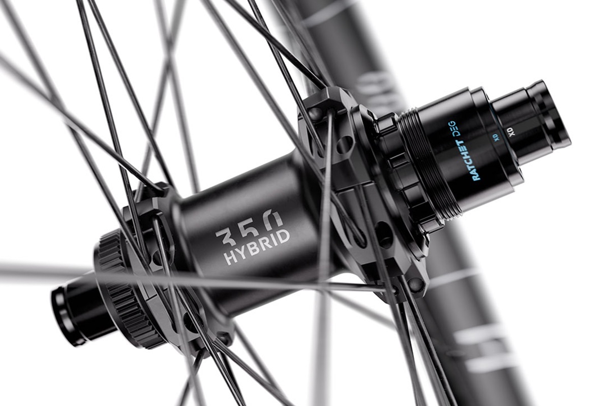 Deze wielset komt met de reguliere 350-naven, waarbij de achternaaf de lichtste Ratchet SL-vrijloopconstructie heeft, met 54 tanden en een vrijloophoek van 6,6 graden. Zowel het voor- als achterwiel telt 24 rechte spaken. Qua cassettepassing kun je kiezen uit Sram XD en Shimano Microspline. Deze wielset komt standaard met tubeless velglint, tubeless ventielen en een adapter om op de centerlock-schijfremmontage een 6-bouts-schijf te kunnen monteren.
