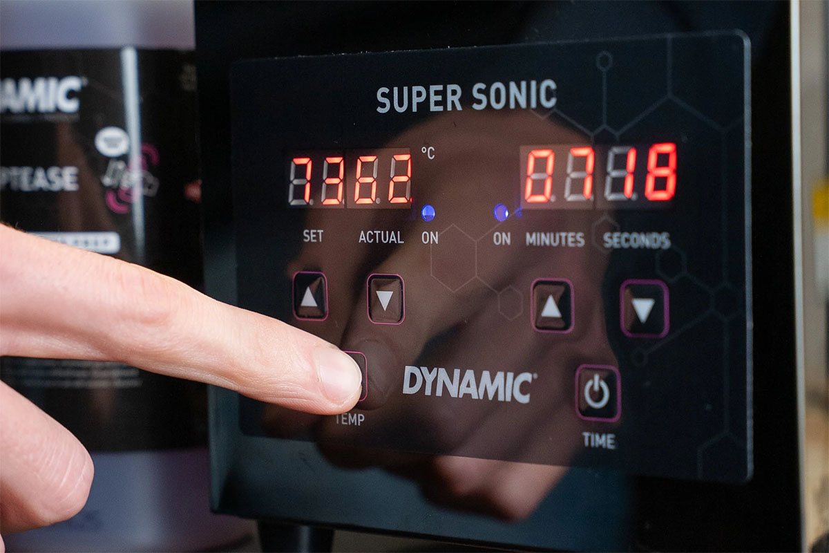 Via de tiptoetsen aan de voorzijde stel je de temperatuur en tijd in. Reken op minimaal 20 minuten reiningstijd om de ketting geheel te ontvetten.