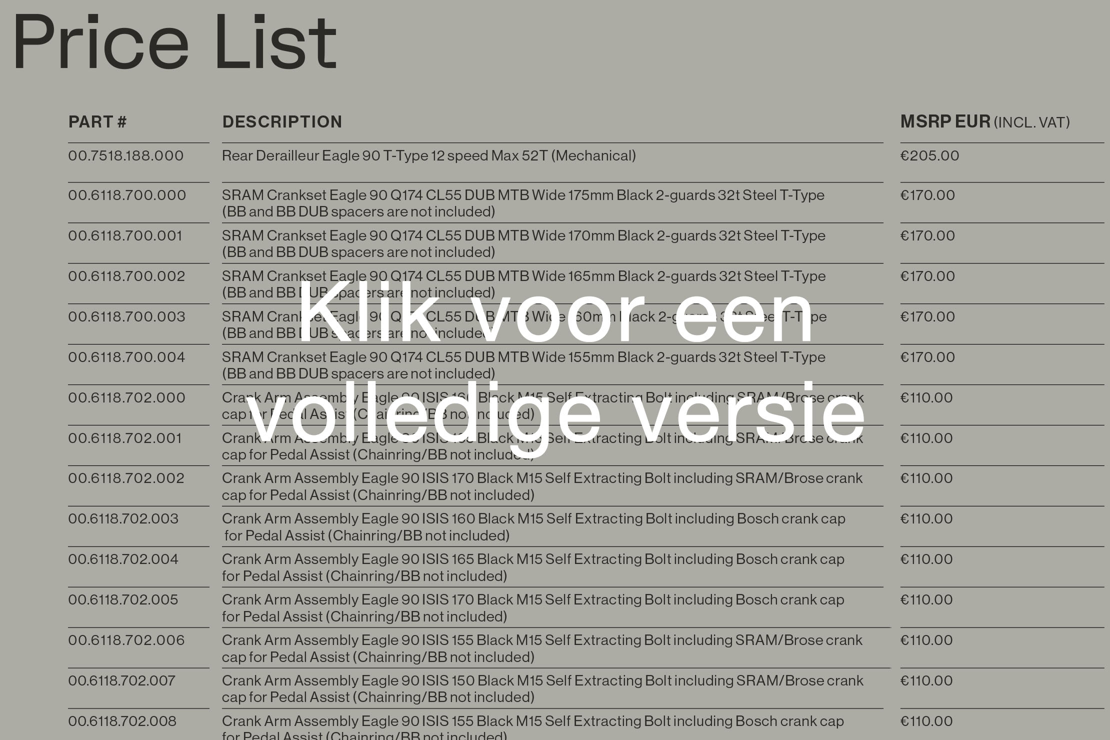 Ik hoor je denken: “Leuk, die twee nieuwe groepen, maar op welk niveau moet ik ze inschalen?” De reden van Sram om niet met de bekende #X-labels (SX, NX, GX, enzovoorts) te werken bij deze groepen is niet medegedeeld. Speculerend: ik denk dat Sram dit bewust doet om de nieuwe groepen met een schone lei neer te zetten, zonder dat het rechtstreekse vervangingen zijn van andere groepen die met hun eigen reputatie en verwachtingen kwamen. Een uiteenzetting van de gewichten én de prijzen geeft echter wel wat inzicht waarmee je Eagle 70 en 90 kunt vergelijken.