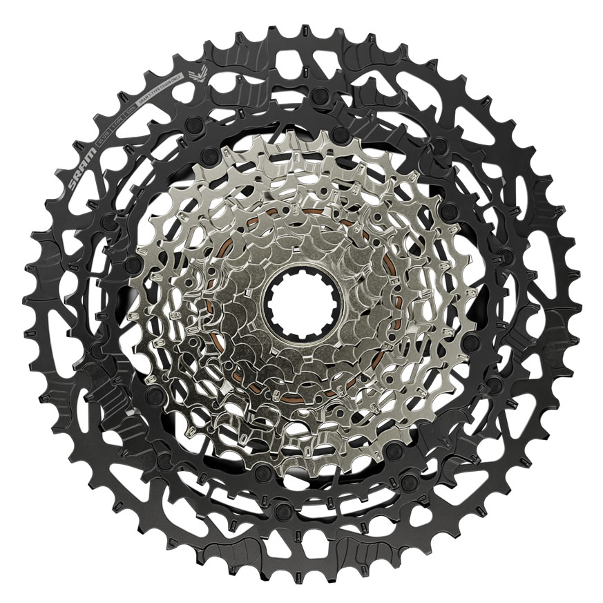 Sram Eagle 90 en 70 Transmission zijn beide nagenoeg volledig compleet nieuwe groepen. De uitzondering is de ketting die Sram voorschrijft voor de Eagle 90; die komt uit de GX Eagle Transmission-groep. En in feite gaat dat ook op voor de cassettes. Voor Eagle 90 specificeert Sram de XS-1275-cassette van GX Eagle Transmission. Eagle 70 wordt gecombineerd met XS-1270-cassette die werd geïntroduceerd bij de lancering van de Srams opstap S-1000 Transmission. En met deze cassette is iets bijzonders. Want waar veruit de meeste cassettes van Sram alleen op de specifieke XD-cassette passing passen, monteer je de XS-1270-cassette op de nog veel voorkomende Shimano HG-drivers.