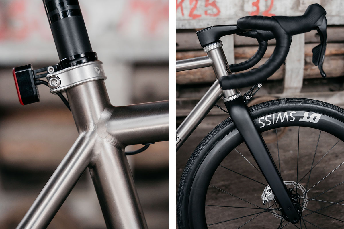 Onder de noemer Pévèle bracht Merckx al niet minder dan vijf all-road-modellen naar de markt. Er zijn versies in staal, aluminium en carbon. Ook is er een versie met trapondersteuning. Met de toevoeging ‘Corsa’, dat Merckx voert voor z’n meest high-end modellen, is er ook een Pévèle met een combinatie van high-end stalen buizen Zona en SL van Columbus. Nu volgt er een titanium pendant, gemaakt uit Columbus Hyperion 3al/2,5v titanium framebuizen.