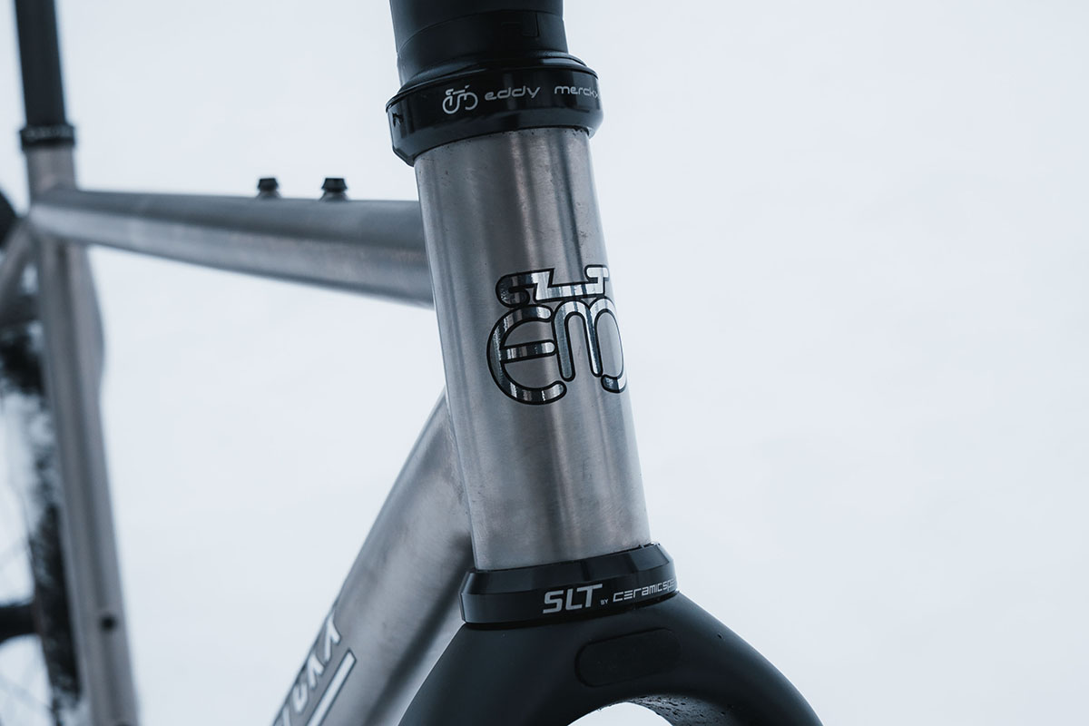 Na een niet al te onverdienstelijke (…) wielercarrière zette Eddy Merckx niet alleen z’n naam op de onderbuis van zomaar wat frames, hij liet ze daadwerkelijk bouwen in zijn eigen woonhoeve in het Belgische Sint-Brixius-Rode. Aanvankelijk in staal, maar daarna ook aluminium en titanium. Die titanium frames werden gemaakt door Johan Vranckx, die al vanaf zijn zestiende voor Eddy Merckx frames laste. Hij leerde bij het Italiaanse De Rosa de stiel om met het witgrijze metaal te werken.