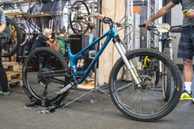 Bar en boos. Dat zou het worden. Ik heb het over het weer op de Demodag, daags voorafgaande aan ’s werelds grootste fietsbeurs in Zuid-Duitsland. Tradities zijn er om gebroken te worden en dus stond er dit keer flinke regen op het programma na jaren van zonneschijn. Wij gokten er op dat de collega journalisten minder hard waren dan wijzelf en dat we dus naar hartenlust, zonder wachtrijen enorm lekker veel fietsen konden testen als nooit te voren. Helaas, het mocht niet zo zijn. Niet dat die collega journalisten eveneens badass, die-hard waren geworden, maar het was gewoon zonnig. Aarzelend zonnig weliswaar, maar zonnig niettemin. Kortom, het was minstens zo druk als voorgaande edities en het was dus een kwestie van slimme timing, een scherp oog en snel handelen om een testfiets in de juiste maat te bemachtigen.