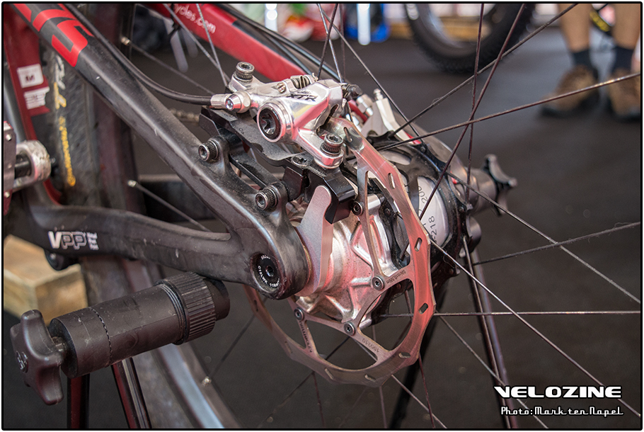 Er komt echter concurrentie aan… in de vorm van Kindernay. De Noren benaderen de versnellingsnaaf iets anders; de bediening is hydraulisch én hij is ontwikkeld met een holle as zodat er een steekas doorheen kan. Je kon er hier al eerder over lezen; nu konden we hem zien, aanraken, en zelfs even proberen…