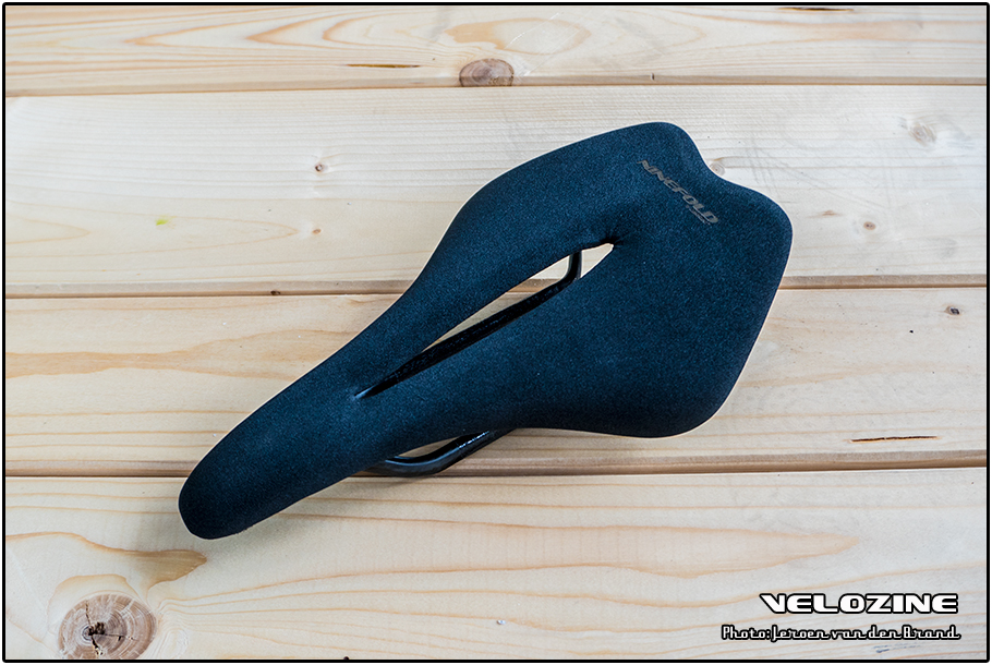 Zwitsere Ceetec. Het zadeldek is gemaakt met materiaal van Continental dat nét wat grip biedt, maar veel slijtvaster is dan andere zadels uit het verleden die een zelfde soort toplaag hadden.