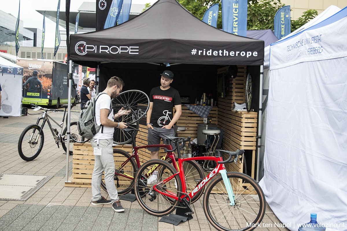 Op de EuroBike kom je ook genoeg tegen dat niet op een stand staat, maar er (letterlijk) tussendoor fietst. Zoals deze Canadees.
