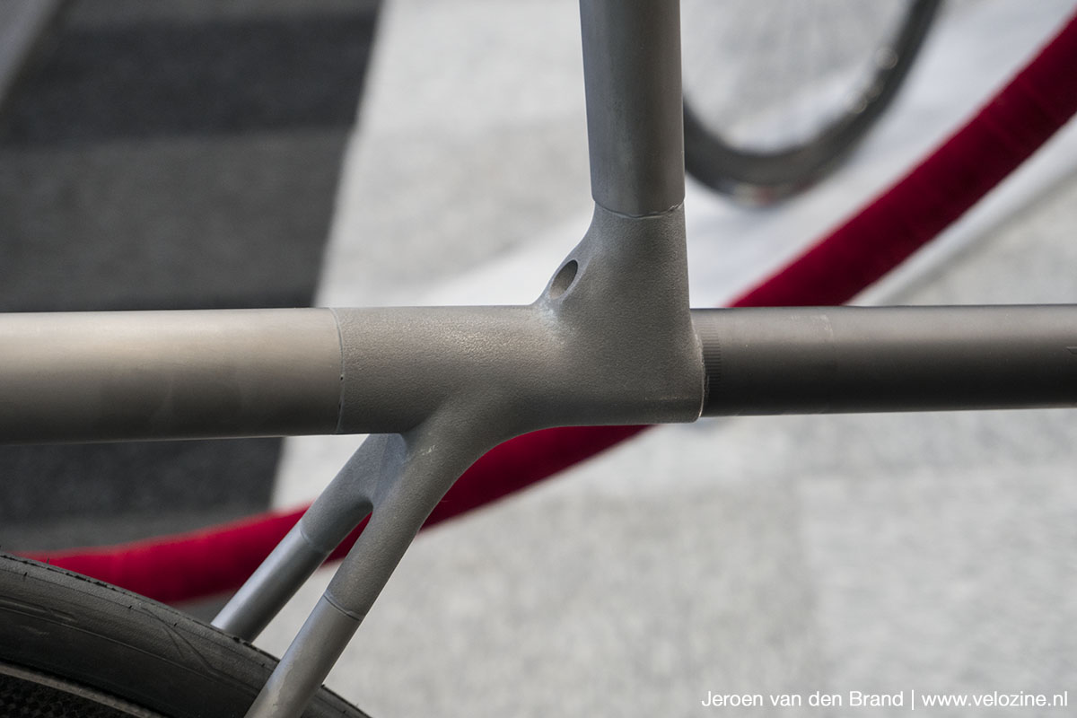 Pilot Cycles uit het Nederlandse Nuenen toont op de EuroBike de Seiren; een prototype racefiets waarbij titanium buizen verlijmd zijn met 3D-geprinte titanium lugs.