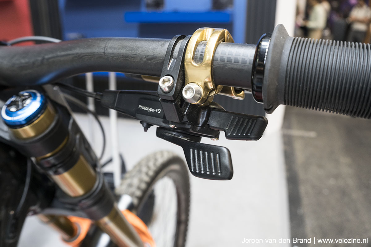 Bij TRP doen ze niet zo geheimzinnig (meer) over hun ontwikkelingen. Hoewel nog niet verkrijgbaar, is het duidelijk dat ze volop bezig zijn met nieuwe derailleurs. Dit downhill-specifieke exemplaar heeft de parallellogram rechtop staan, in tegenstelling tot de eerdere versies, zoals de TR12 die we begin dit jaar nog testten. De nieuwe layout vraagt minder schakelkracht en is wat beter bestand tegen schokken.