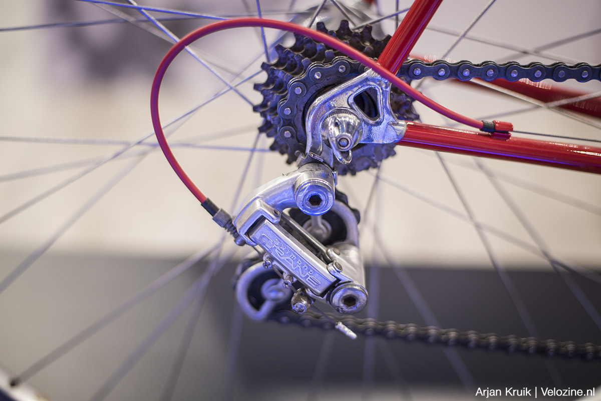Van nieuw en elektrisch naar oud en analoog: een stalen Frandria uit 1976 van Freddy Maertens met een Dura-Ace 2×10-transmissie op de stand van Shimano.