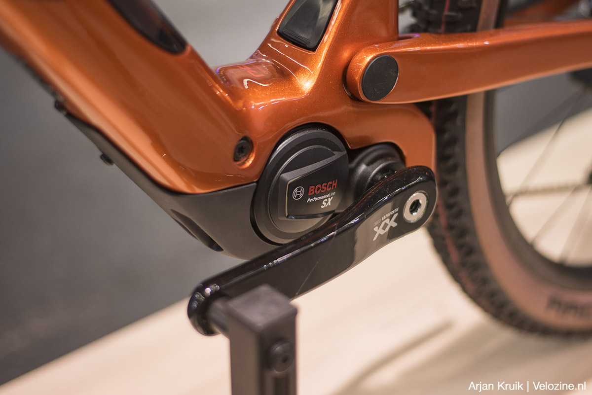 Een van de meest besproken nieuwigheden is de nieuwe Bosch SX-motor. Weegt 2 kilo, heeft 55 newtonmeter koppel en levert tot 600 watt. En hij is zeer compact.