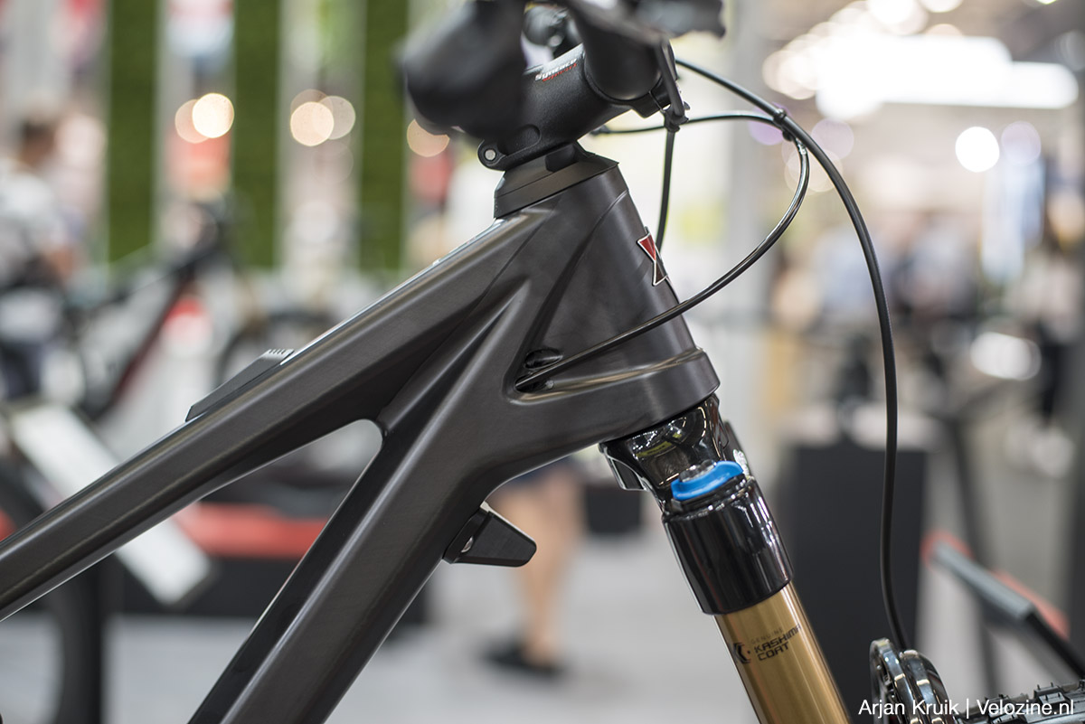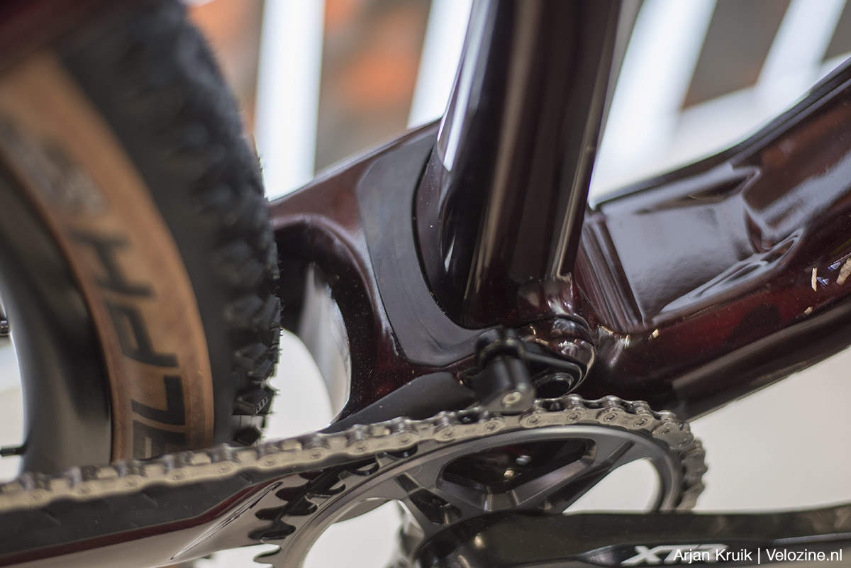 Net als bij de nieuwe Specialized Epic World Cup zit het stangetje dat de dwarskrachten op de demper opvangt in de bovenbuis verstopt. Maar dan – ere wie ere toekomt – nóg mooier.