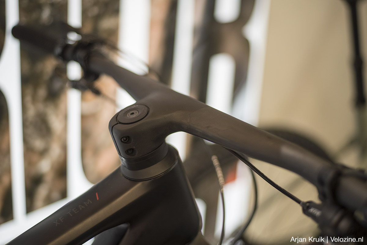 Hoort tegenwoordig ook bij een dure xc-bike: een stuur met geïntegreerde stuurpen. Of is het een stuurpen met geïntegreerd stuur…?