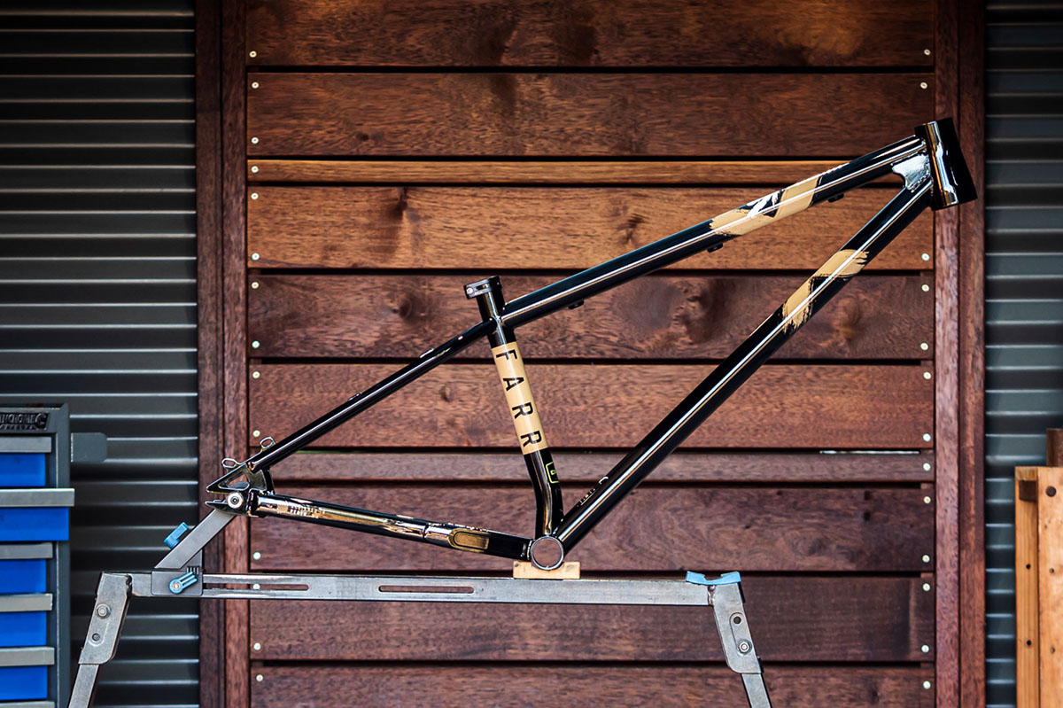 Maar Farr maakt inmiddels veel meer dan alleen (opzet)sturen. De Australiërs draaien zelfs hun hand niet om voor frames. Waarbij de Twin-T de meest opvallende is met zijn dubbele onderbuis én bovenbuis. En met aanvullend een pumptrackframe en een ATB-frame, allemaal gemaakt uit staal, wijkt het merk inmiddels wel wat af van de focus op lange-afstandsfietsers. Maar niemand weerhoudt je er natuurlijk van om een uur of 24 te pumpen. Net als iedereen heeft ook Farr last van flinke vertragingen bij zijn toeleveranciers. Voorlopig zijn er dan ook geen frames leverbaar.