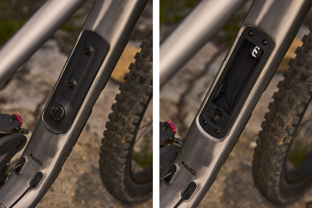 Meest opmerkelijke is niet zozeer dat de Trance X Advanced en Trance X Advanced SX, dus de carbon-versies, nu een opbergvak hebben in de onderbuis. Want dat werd in 2022 al geïntroduceerd bij de ‘minder dikke’ Trance Advanced-modellen. Nee, opmerkelijk is vooral dat Giant óók de aluminium 2024 Trance X en Trance X SX een opbergvak meegeeft. En zo’n gapend gat in de onderbuis is in een carbon constructie door het verleggen van de vezels goed op te vangen zonder al te veel gewicht toe te voegen. In aluminium is het een stuk complexer om de buis sterk genoeg te houden. Althans, niet zonder op andere plekken veel materiaal toe te moeten voegen. Maar als iemand het voor elkaar moet krijgen is het Giant wel. Al sinds jaar en dag zijn ze meesters in het grijze lichtmetaal.