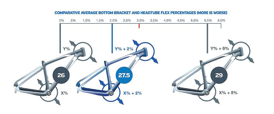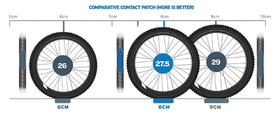 3) Betere controle: hoe groter de wielomtrek is, hoe groter het contactoppervlak tussen band en ondergrond. Een groter contactoppervlak is prettig als je grip zoekt in een klim of juist tractie in bochten of steile afdalingen. Dat is juist een van de grote voordelen van 29 inch wielen. Een 650b wiel heeft een dergelijk voordeel ook ten opzichte van de 26 inch variant. Daarnaast, maar dat hangt weer samen met het gewicht verhaal, kan een frame voor kleine wielen net even wat stijver gebouwd worden, zodat je fiets ook preciezer doet wat jij wil.