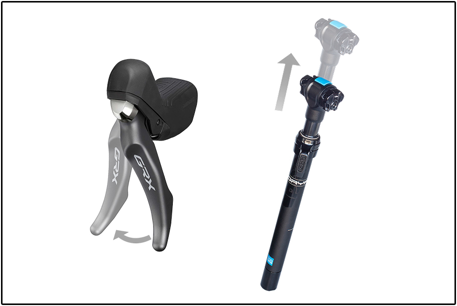 Tot slot is er nóg een specifieke linker rem-/schakelgreep voor de mechanische one-by setups: de RX810-LA. Die heeft een bewegende ‘schakelhendel’, maar dan zonder ‘klikjes’: hij is namelijk bedoeld om een dropper-zdelpen mee te bedienen! Nu kun je je afvragen of je niet beter gewoon een mountainbike kan pakken als je een dropper nodig hebt, maar los daarvan: met de RX810-LA behoren de lelijke geknutselde extra hendels op de gravelbike-racebocht gelukkig tot het verleden.
