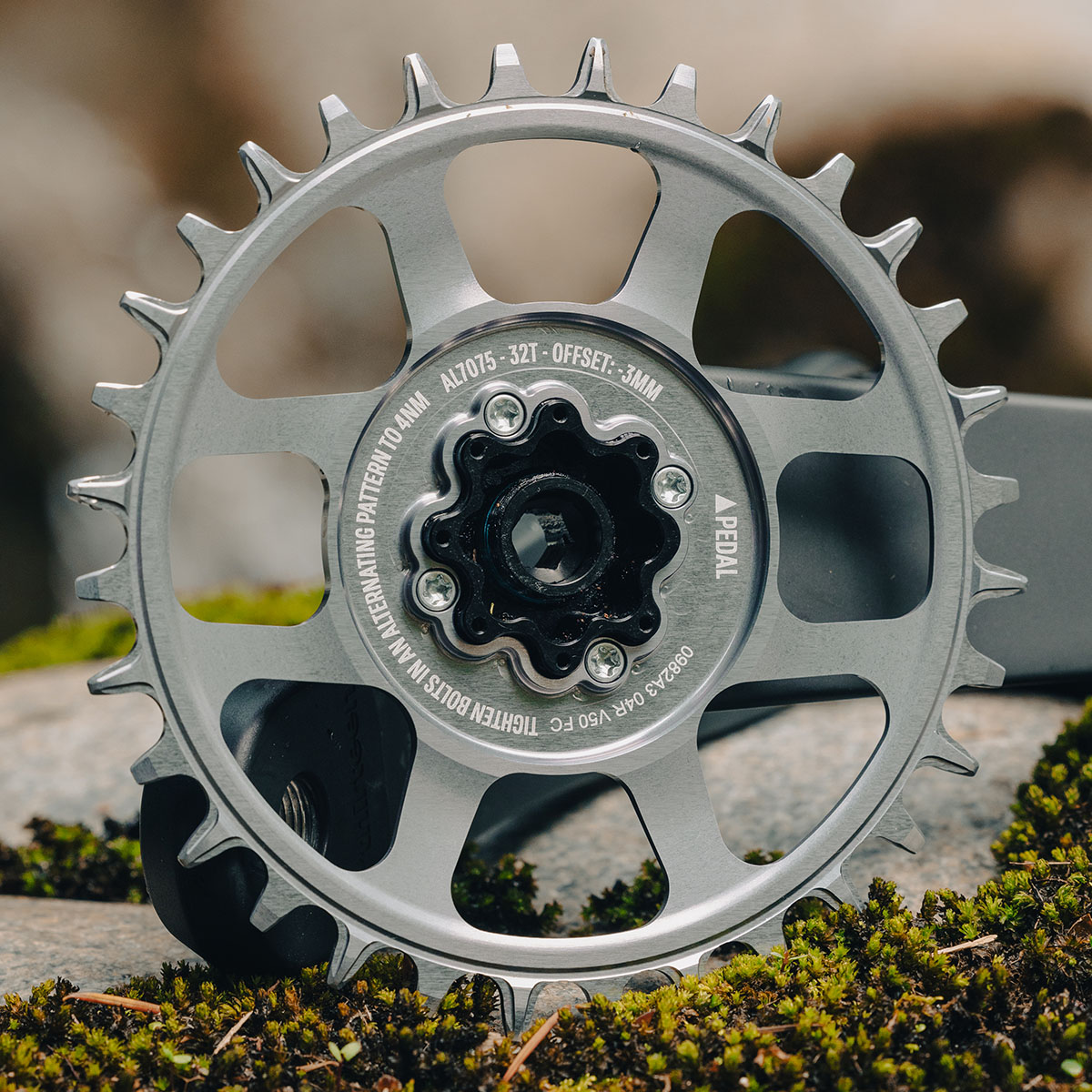 Ook de kettingbladmontage is op de schop gegaan, want e*thirteen gebruikt nu de 8-bout kettingbladstandaard, zoals bij de nieuwste cranks van Sram. Dat betekent dat je dus eenvoudig kunt wisselen met andere 8-bouts kettingbladen. e*thirteen’s eigen Helix Race-kettingbladen monteer je op deze verbinding echter met slechts vier bouten. Volgens e*thirteen is dat minstens zo sterk, maar vooral wat lichter.