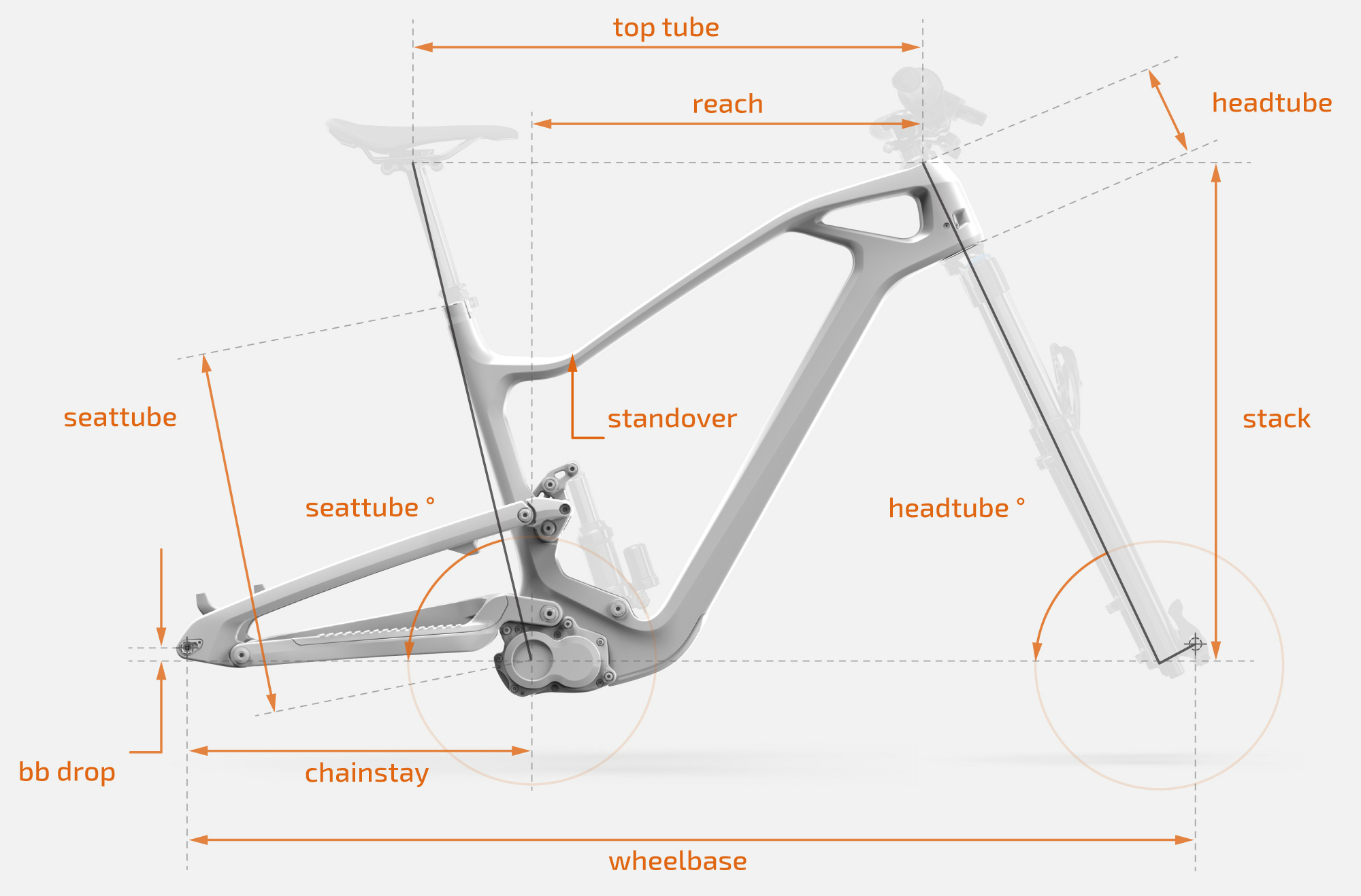 Bij de geometrie zien we dat de M-Bikes er maar in drie framematen is. Begrijpelijk; voor elke maat is een aparte framemal nodig en die zijn behoorlijk prijzig. Opvallend is dat frames écht lang zijn. Niet de meer typische lange reach in combinatie met een steile zitbuishoek en korte stuurpen voor toch een redelijk ‘compacte’ zit die zoveel anderen tot dusver aanbieden als ‘progressieve geometrie’. Daarnaast is het opvallend dat de L en XL dezelfde zitbuislengte hebben, waardoor de XL verhoudingsgewijs dus méér standover height. De keerzijde is dat je per definitie een lange zadelpen nodig hebt. Wil je veel drop, dan is dat echter weer een uitkomst.