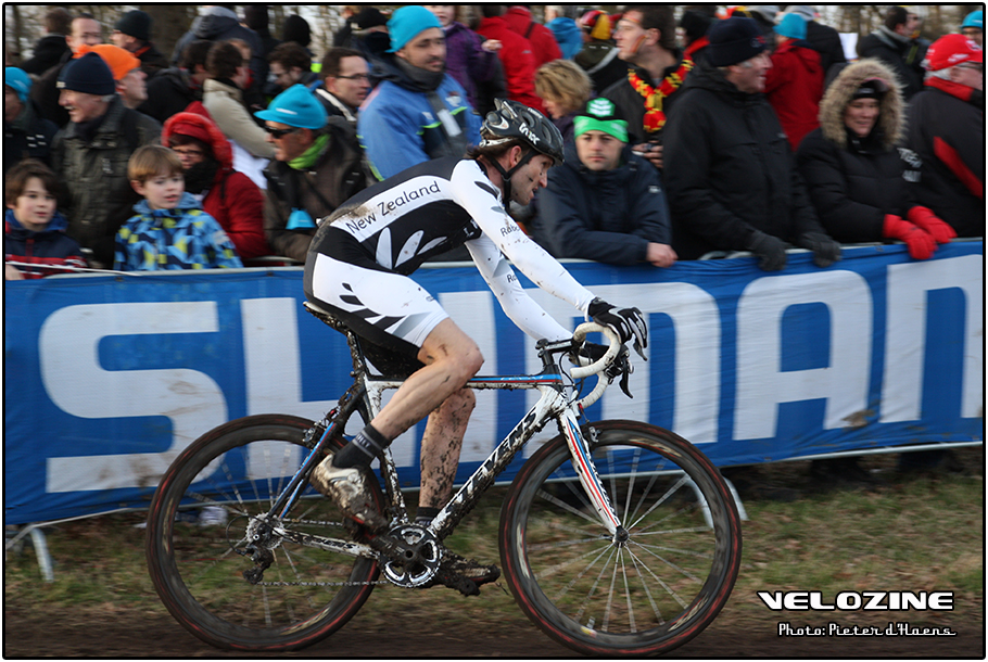 Bij mijn aankomst in Hoogerheide wordt dat snel duidelijk. Naast de gebruikelijke campers van Telenet-Fidea, het Rabobank kamp met Marianne Vos en Lars van der Haar en de rijdende villa van Sven Nys zijn er op eens ook Zweden, Canadezen, Noren en meer Amerikanen dan op welke andere cross ook. Toch zijn er ook exoten die we ook gedurende het seizoen vaker zien en zo veel mogelijk omlopen proberen mee te pakken. Zoals Alexander Revell. De Nieuw Zeelander die omwille van zijn flamboyante moustache een kleine mediasensatie is in België en – hoewel zonder moustache maar niet minder geliefd en zeker niet minder toegejuicht – mede-Nieuw Zeelander Angus Edmond.