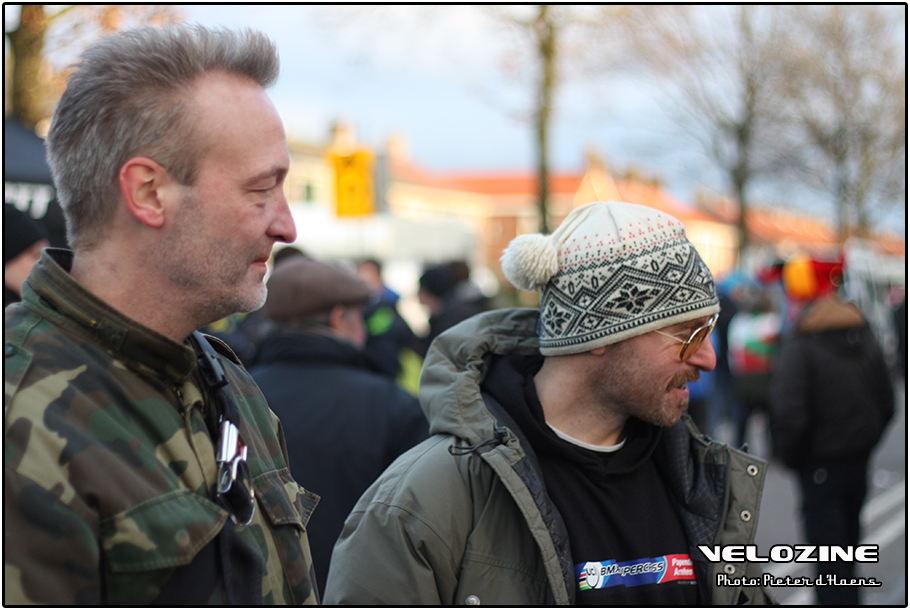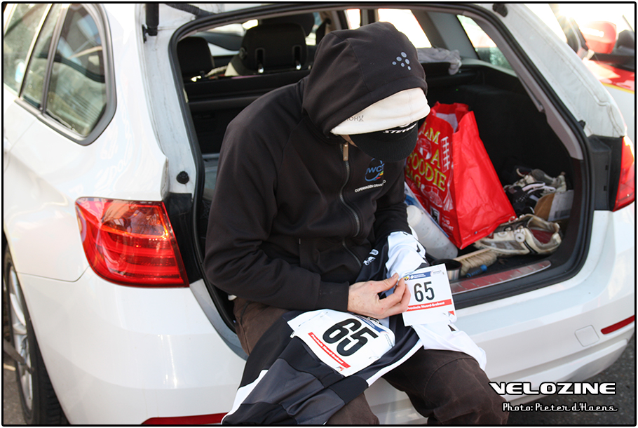 Door de omstandigheden kom ik met de auto niet tot aan de zone waar de rijders zich begeven. Als ik na een lange wandeling verlaat aankom, heeft Angus de eerste parcoursverkenning er al op zitten. Nadat we de accreditatie hebben geregeld en ik voorzien ben van een UCI Coach Pass met titel, foto en gebruikelijke spelfout (…) is het tijd voor de laatste verkenning voor de race. Te voet gaan we het parcours af om te zien hoe de Beloften rijders het er vanaf brengen. Langs het parcours horen we opmerking als “Holland doet nie mee, ollee ollee” en “’t is precies een BK…”. En inderdaad, Wout van Aert is op dat moment onklopbaar en bezig een mislukt BK meer dan goed te maken. Onze aandacht ligt echter bij de inspectie van het parcours en het rechtop blijven staan op de modderige hellingen.