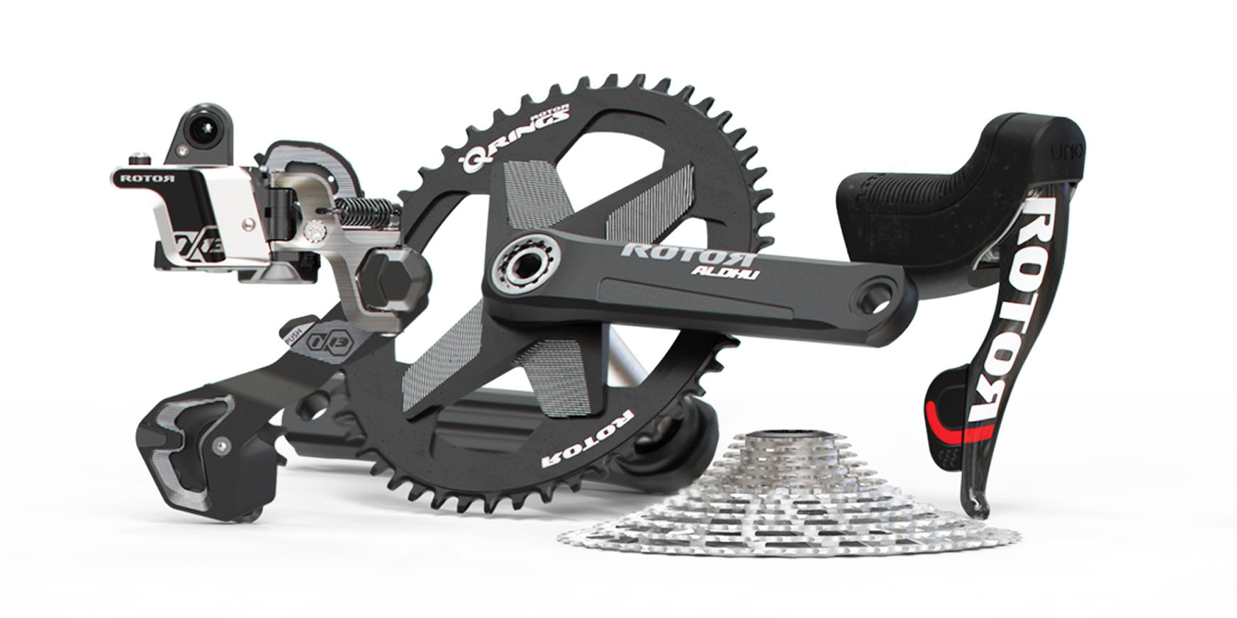 De groep komt dus uit Spanje. Rotor lanceerde z’n hydraulische groepen op de EuroBike in 2018 voor racefietsen en gravelbikes meteen in twee smaken: 1×12 en 1×13-speed. De 13-speed cassette vraagt om een specifieke naaf, waarbij de naafflens wat verder naar binnen is gezet. Rotor levert zelf die naaf los of in een complete wielset. Om niet meteen daaraan vast te moeten zitten, biedt Rotor dus ook een 12-speed variant aan. Daarbij ontbreekt het de cassette aan de 10-tands krans, waardoor de cassette op de bekende HG11-Shimano passing past; de cassette-passing die de markt nog altijd domineert.
