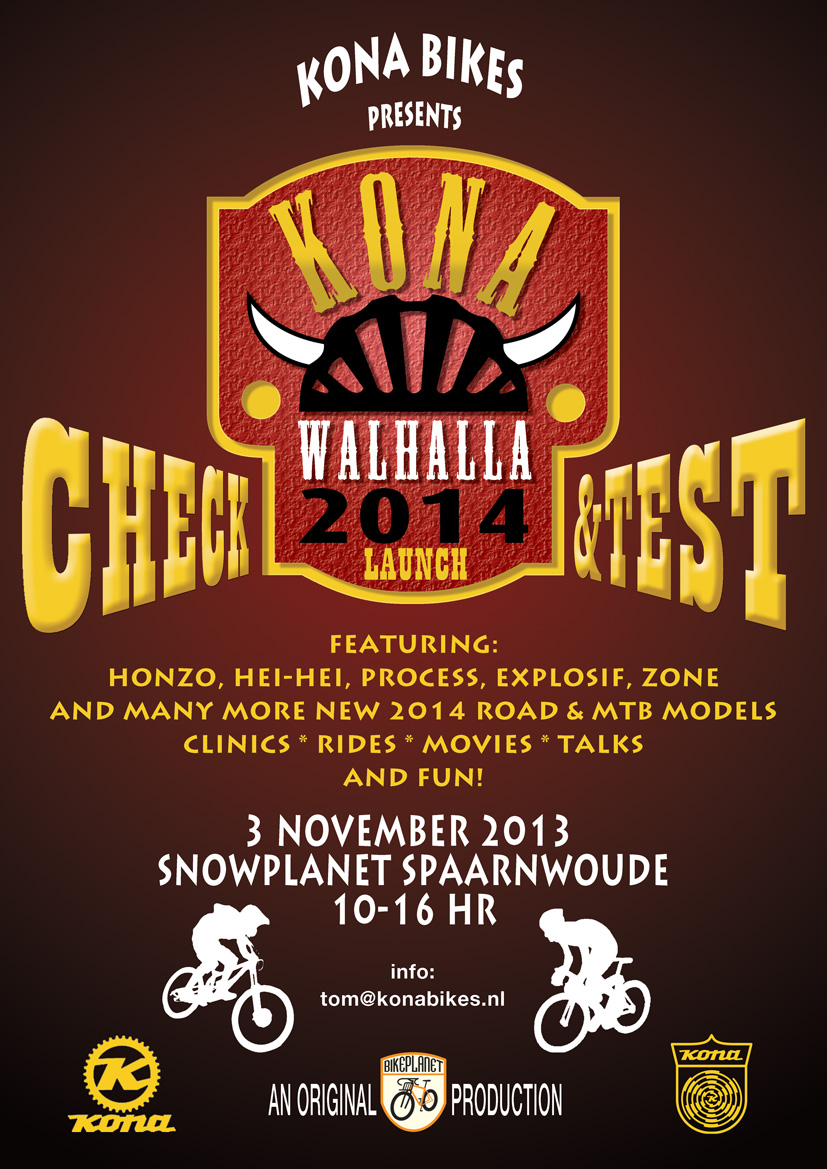 “Hoe, wat, waar?” hoor ik je denken. Op zondag 3 november organiseert Kona in samenwerking met Bikeplanet en Snowplanet Spaarnwoude de Kona Walhalla 2014 Launch dat plaats zal vinden bij de laatst genoemde in Spaarnwoude.