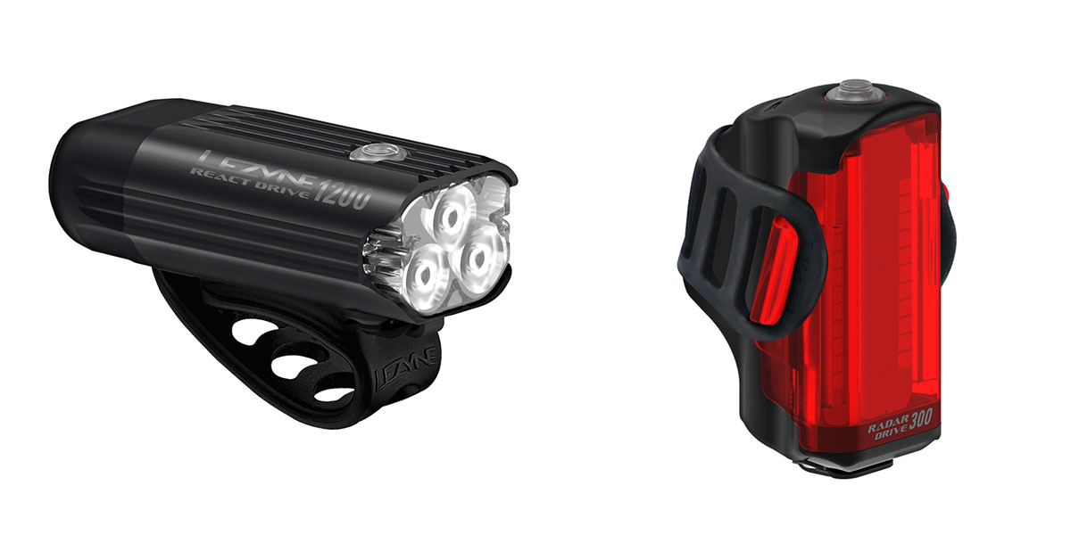 De achterlamp Lezyne Radar Drive heeft een opbrengst van maximaal 300 lumen en gaat op een volle batterijlading tot maximaal 20 uur mee. De voorlamp React Drive heeft in z’n maximale stand 1.200 lumen opbrengst, waarbij Lezyne 70 branduren als maximum opgeeft. Dat is dan een knipperstand. Bij de laagste continu-stand met 25 lumen opbrengst moet je rekenen op 65 uur, terwijl in de overdrive je 1.200 lumen opbrengst heb gedurende 2 uur.