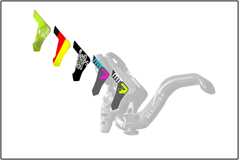 De gekleurde ringen van de remklauwen zijn misschien een gimmick, maar wel één waarmee je je fiets een eigen uitstraling kunt geven. Je kan nu óók de covers van je remgrepen in die uitstraling meenemen. Voor de Carbotecture SL remgrepen (MT8, MT7, MT6, MT1893, MT Trail SL en MT Trail Carbon, vanaf modeljaar 2015) zijn er diverse standaard kleurenopties verkrijgbaar. Daarnaast kun je zelf kleurencombinaties óp de stickers samenstellen, of zelfs compleet custom versies bestellen… met het logo van je bike-team, of een foto van je kinderen…